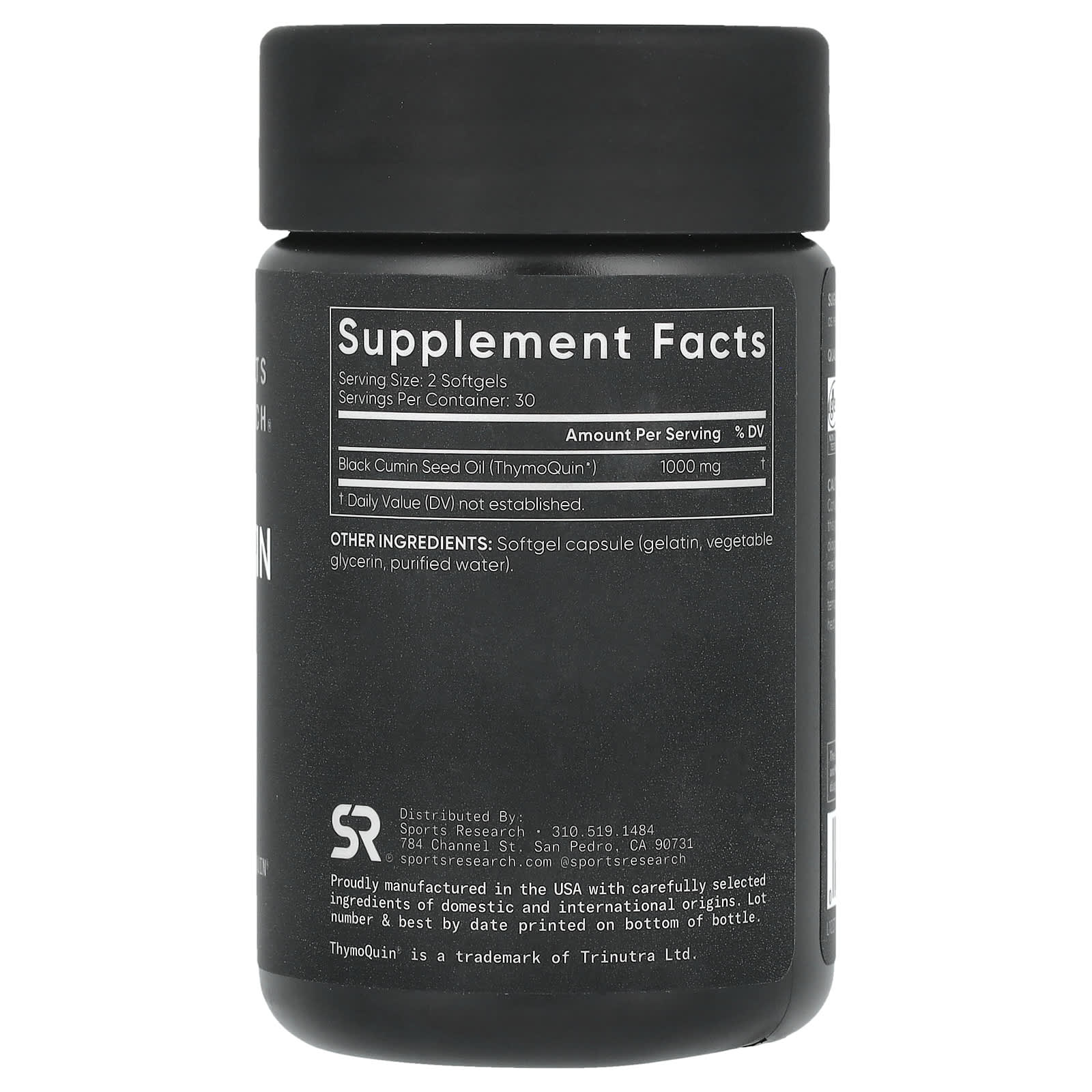 *Some information on the Sports Research, Black Cumin Seed Oil, 1,000 mg, 60 Softgels (500 mg per Softgel)label may be missing, or it may have been written incorrectly. We work hard to keep the information accurate & up to date. Please let us know if you discover any errors.