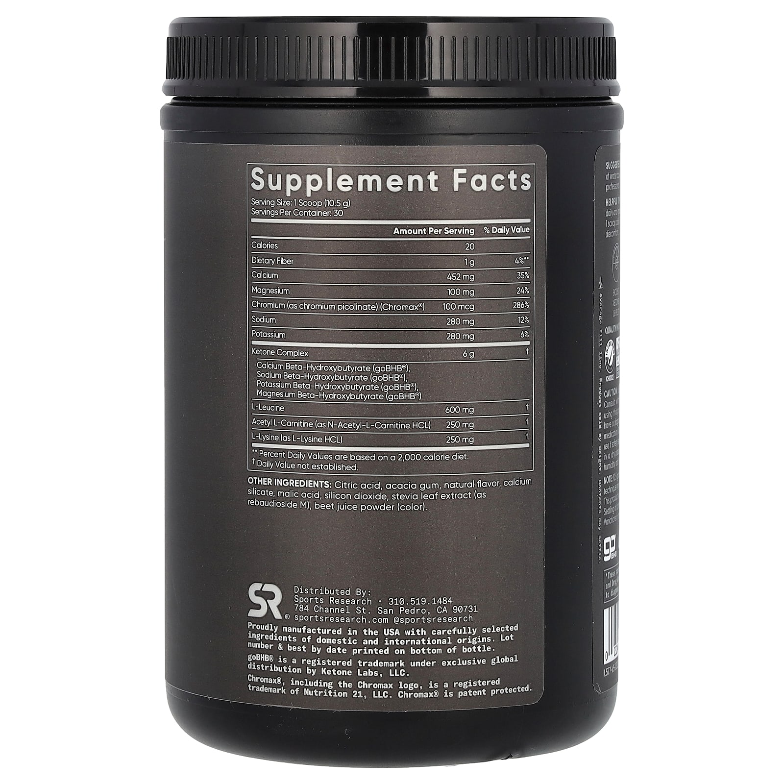 *Some information on the Sports Research, Keto+, Fruit Punch, 11.1 oz (315 g)label may be missing, or it may have been written incorrectly. We work hard to keep the information accurate & up to date. Please let us know if you discover any errors.