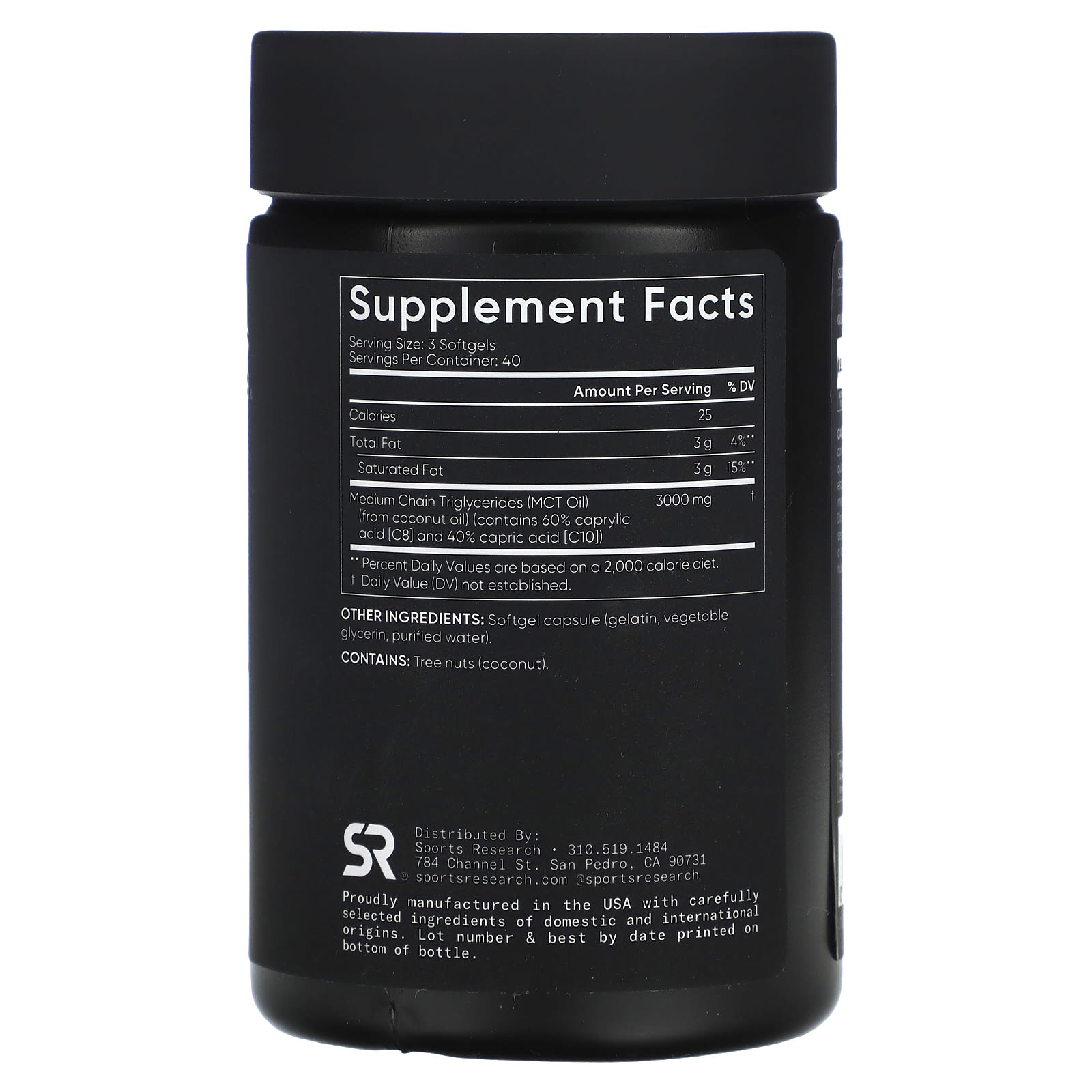 *Some information on the Sports Research, MCT Oil, 3,000 mg, 120 Softgels (1,000 mg per Softgel)label may be missing, or it may have been written incorrectly. We work hard to keep the information accurate & up to date. Please let us know if you discover any errors.