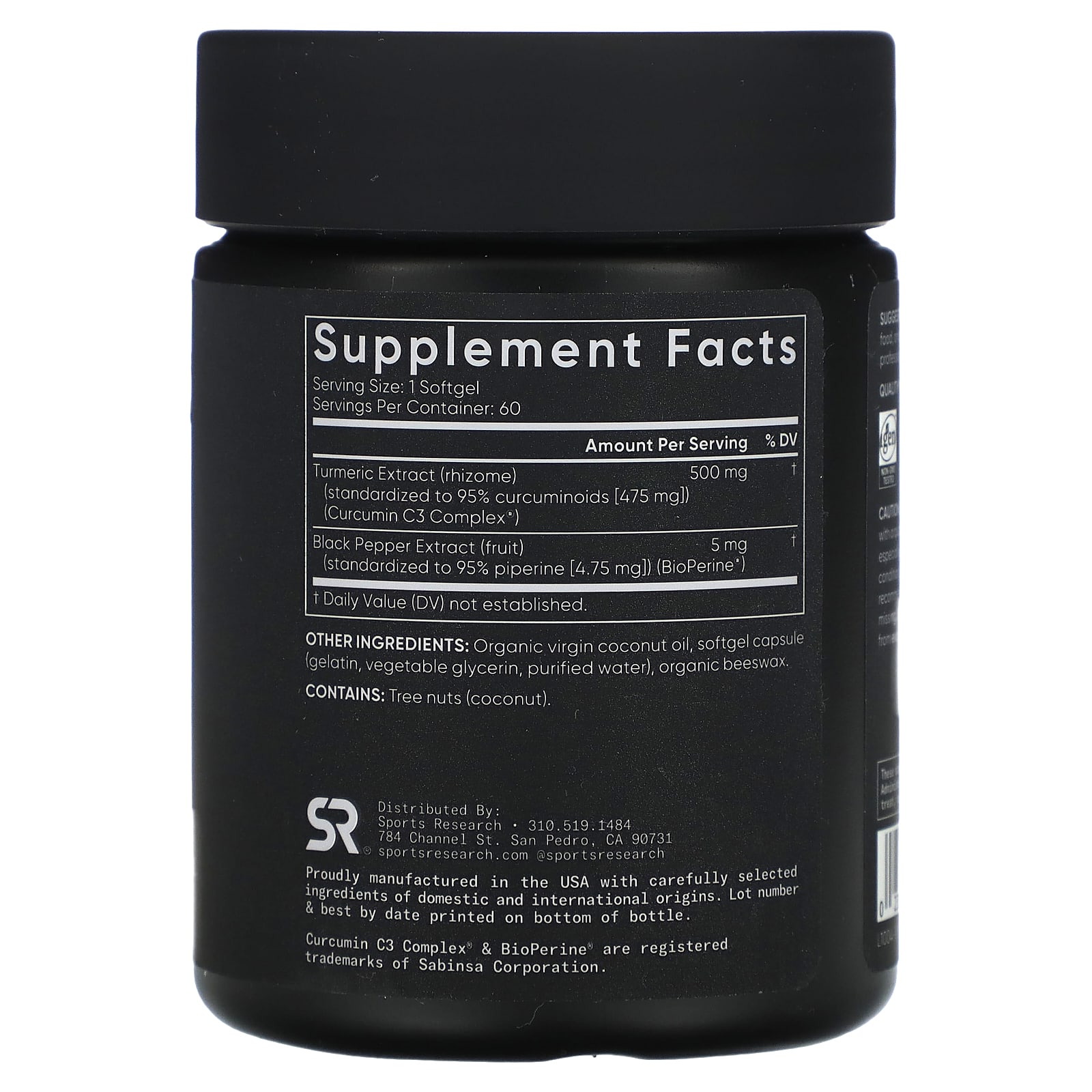 *Some information on the Sports Research, Turmeric Curcumin, 500 mg, 60 Softgels, Dietary Supplementslabel may be missing, or it may have been written incorrectly. We work hard to keep the information accurate & up to date. Please let us know if you discover any errors.