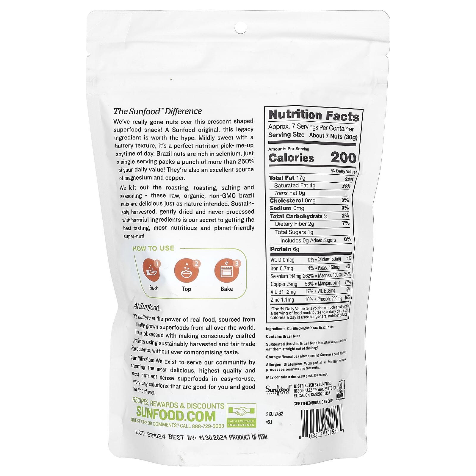 *Some information on the Sunfood, Raw Organic Brazil Nuts, 8 oz (227 g)label may be missing, or it may have been written incorrectly. We work hard to keep the information accurate & up to date. Please let us know if you discover any errors.