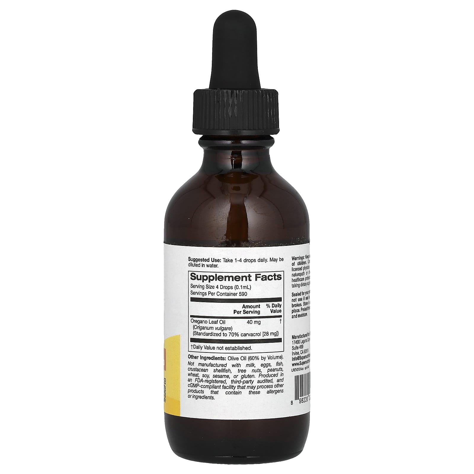 *Some information on the Super Nutrition, Oregano Oil, 2 fl oz (59 ml)label may be missing, or it may have been written incorrectly. We work hard to keep the information accurate & up to date. Please let us know if you discover any errors.