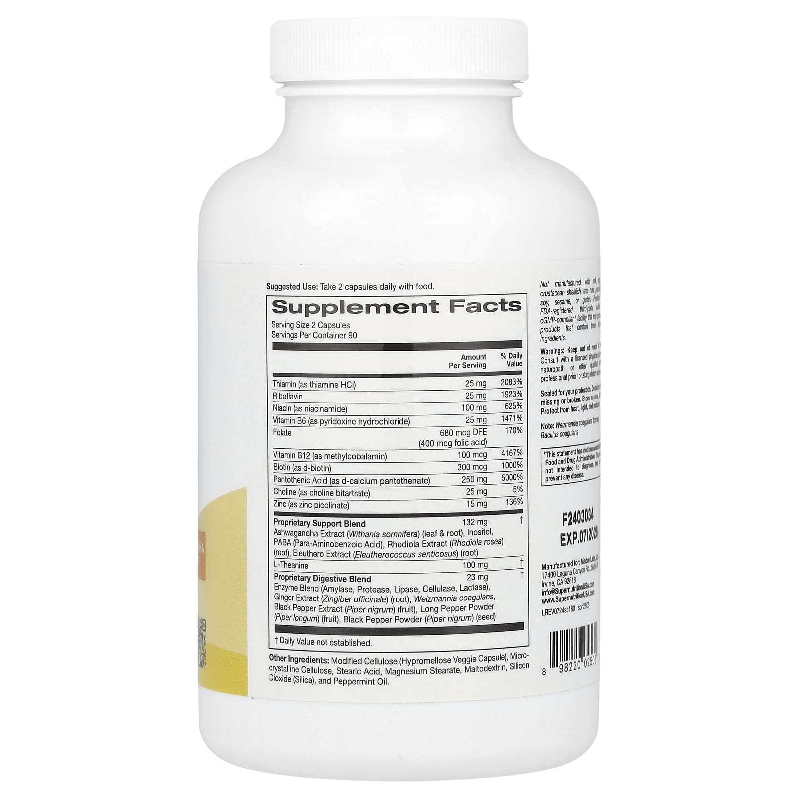 *Some information on the Super Nutrition, Stress Support, 180 Veggie Capsuleslabel may be missing, or it may have been written incorrectly. We work hard to keep the information accurate & up to date. Please let us know if you discover any errors.