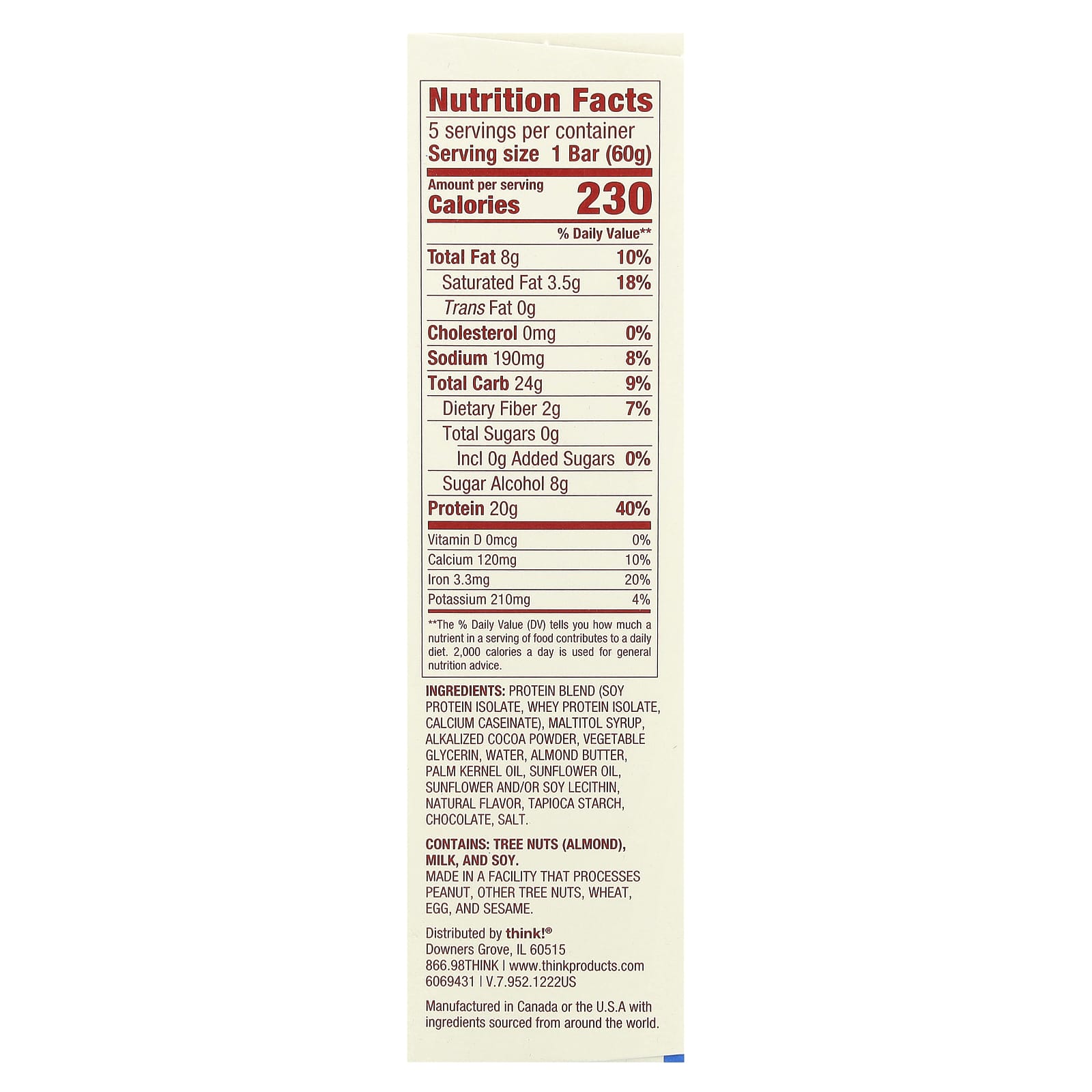 *Some information on the Think !, High Protein Bars, Brownie Crunch, 5 Bars, 2.1 oz (60 g) Eachlabel may be missing, or it may have been written incorrectly. We work hard to keep the information accurate & up to date. Please let us know if you discover any errors.