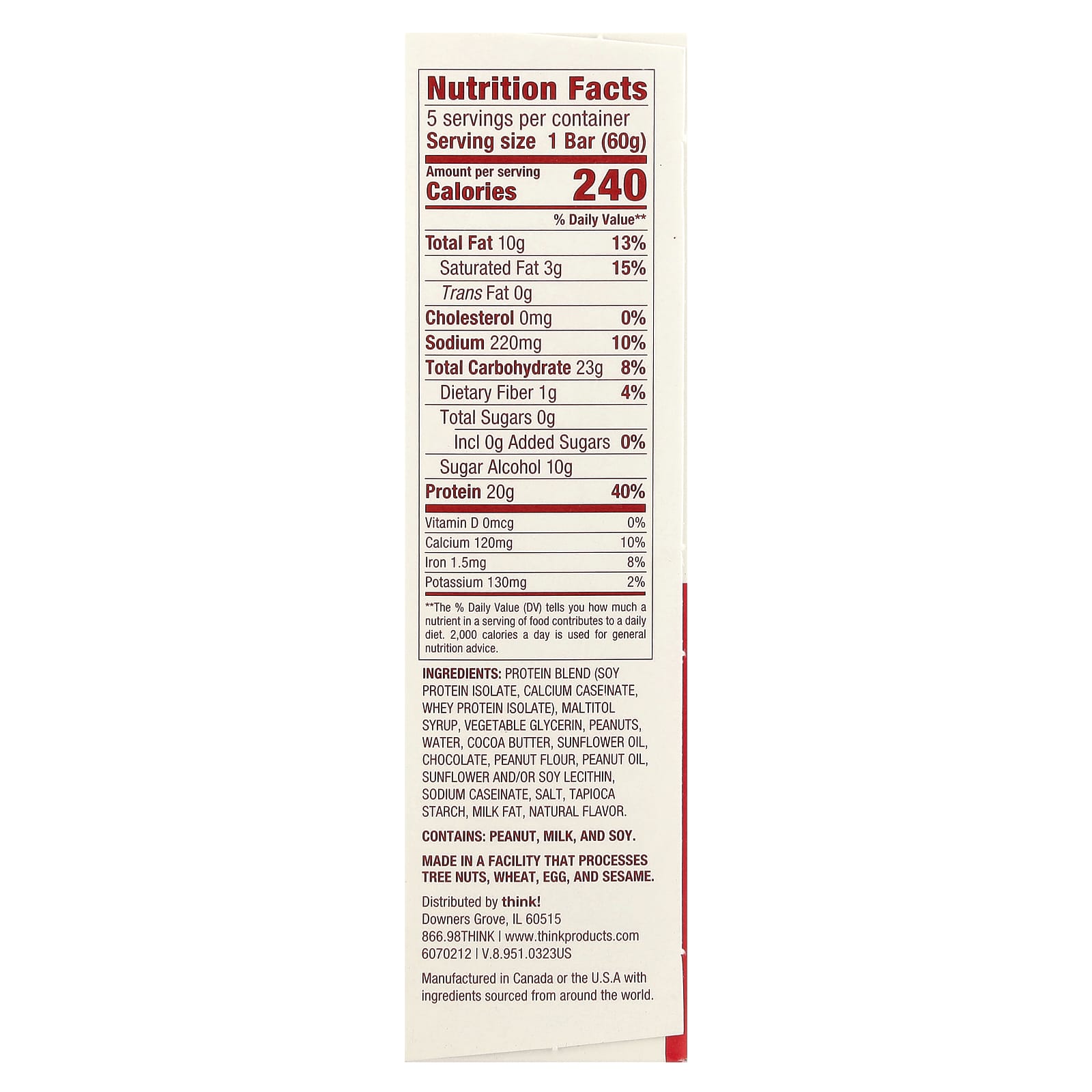 *Some information on the Think !, High Protein Bars, Chunky Peanut Butter, 5 Bars, 2.1 oz (60 g) Eachlabel may be missing, or it may have been written incorrectly. We work hard to keep the information accurate & up to date. Please let us know if you discover any errors.