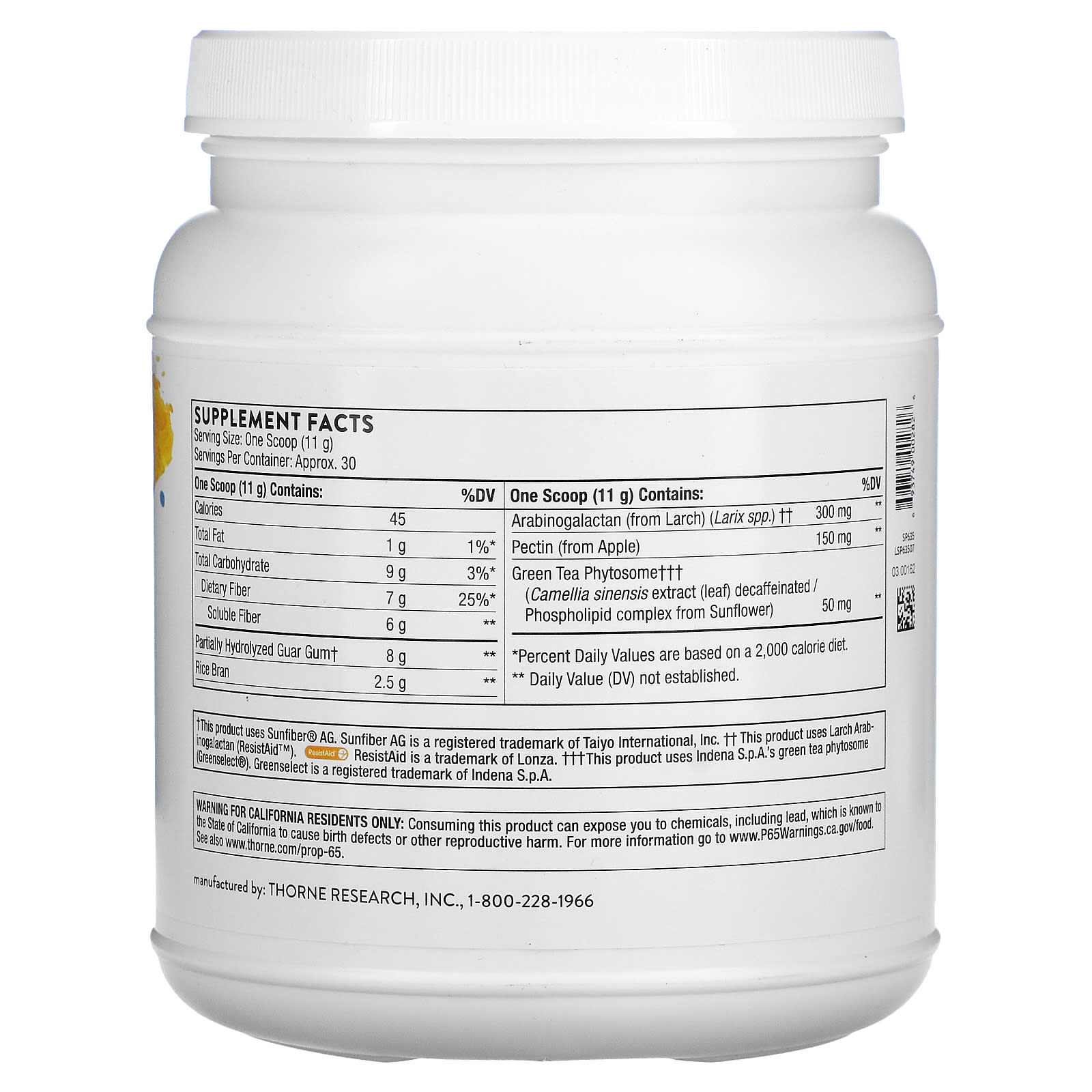 *Some information on the Thorne, FiberMend, 11.6 oz (330 g)label may be missing, or it may have been written incorrectly. We work hard to keep the information accurate & up to date. Please let us know if you discover any errors.