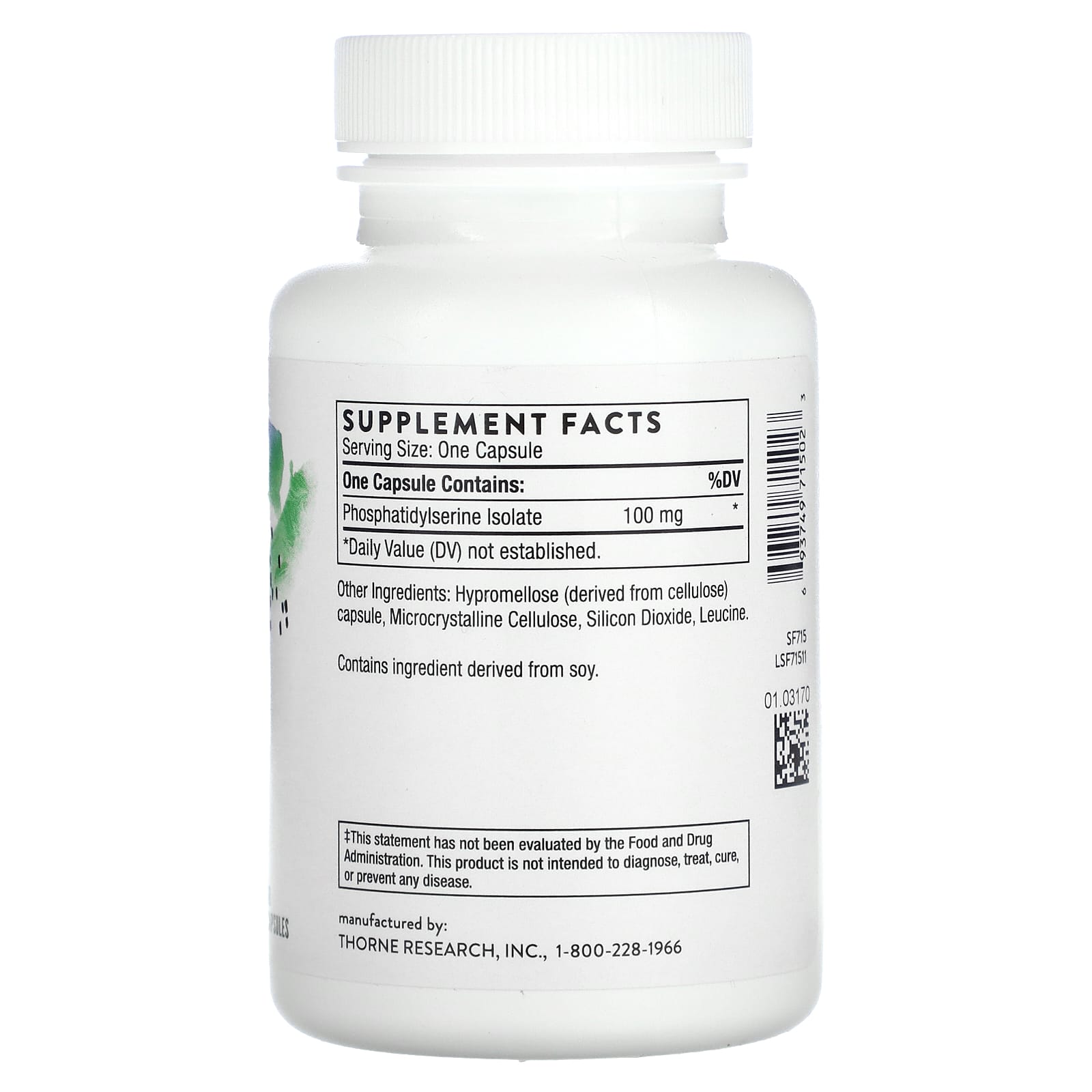 *Some information on the Thorne, Phosphatidylserine, 60 Capsuleslabel may be missing, or it may have been written incorrectly. We work hard to keep the information accurate & up to date. Please let us know if you discover any errors.
