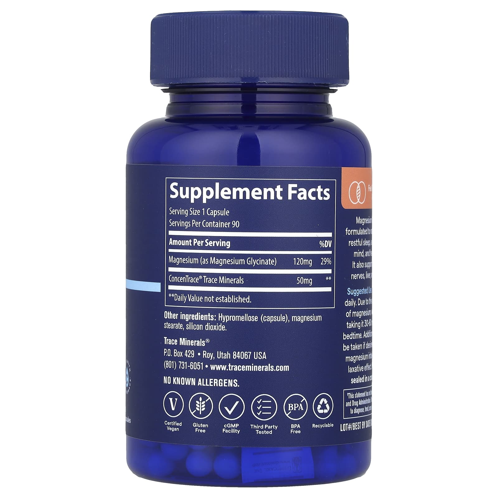 *Some information on the Trace Minerals ®, Magnesium Glycinate, 90 Capsuleslabel may be missing, or it may have been written incorrectly. We work hard to keep the information accurate & up to date. Please let us know if you discover any errors.