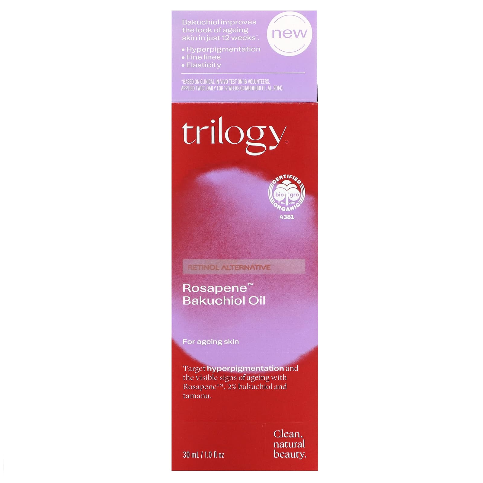 *Some information on the Trilogy, Rosapene Bakuchiol Oil, 1 fl oz (30 ml)label may be missing, or it may have been written incorrectly. We work hard to keep the information accurate & up to date. Please let us know if you discover any errors.