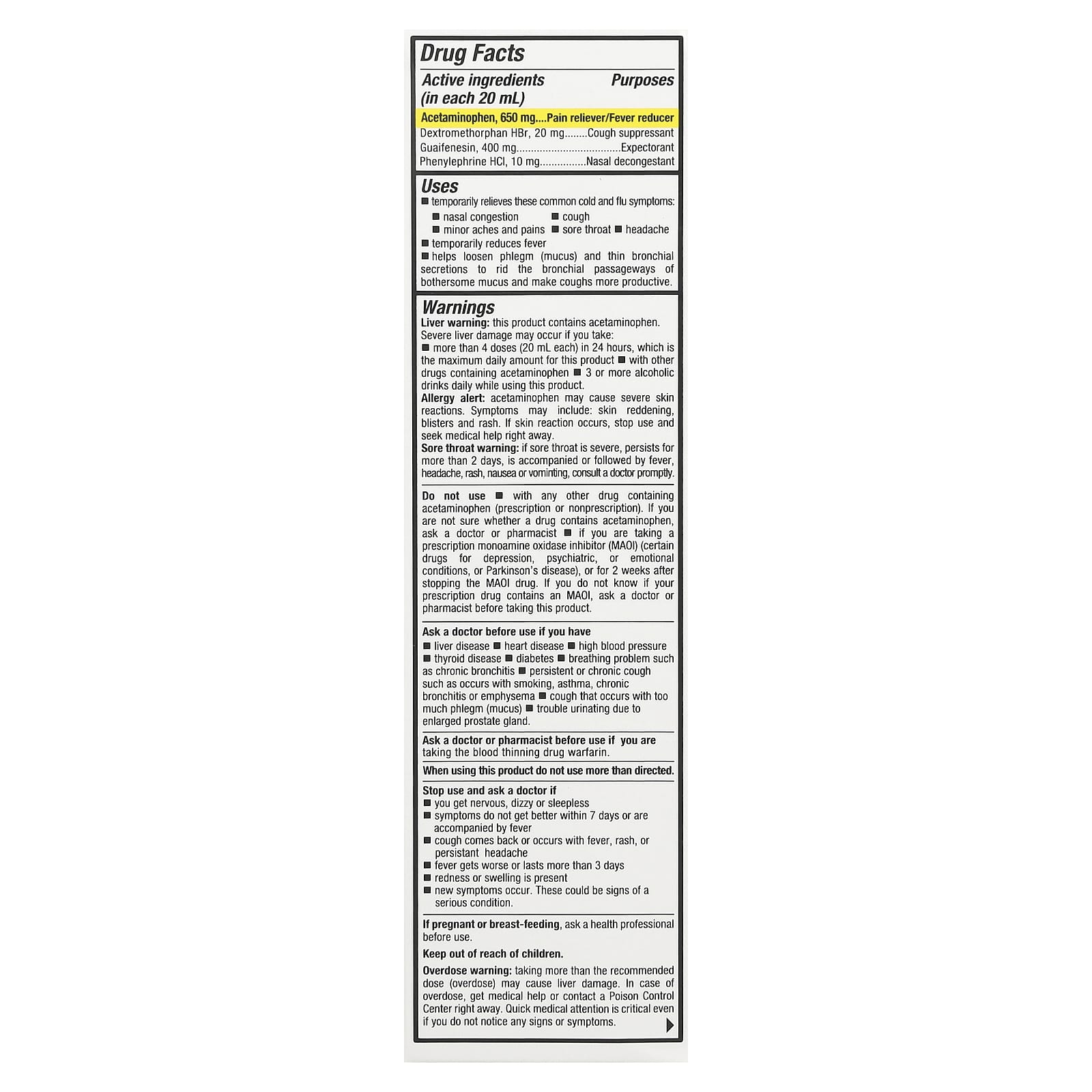 *Some information on the Tukol, Max Action, Cold, Flu and Sore Throat, Ages 12+, 6 fl oz (177 ml)label may be missing, or it may have been written incorrectly. We work hard to keep the information accurate & up to date. Please let us know if you discover any errors.