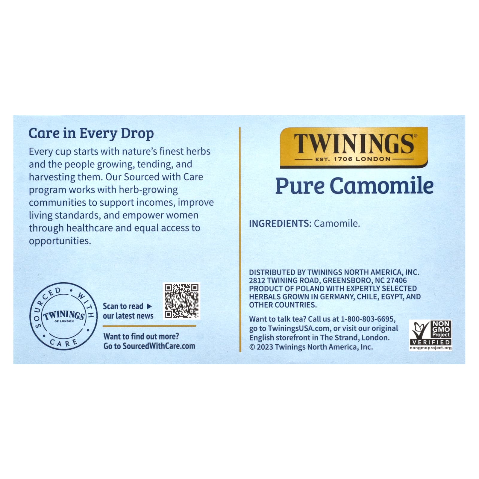 *Some information on the Twinings, Pure Herbal Tea, Pure Camomile, Caffeine Free, 50 Tea Bags, 2.65 oz (75 g)label may be missing, or it may have been written incorrectly. We work hard to keep the information accurate & up to date. Please let us know if you discover any errors.