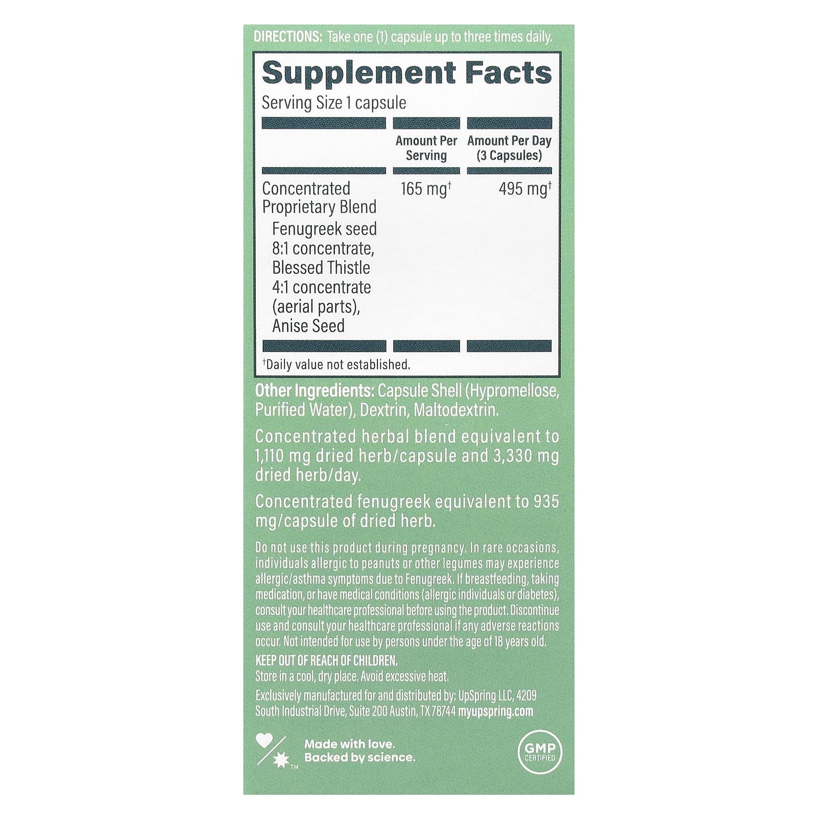 *Some information on the UpSpring, Milkflow, Fenugreek & Blessed Thistle, 100 Vegetarian Capsuleslabel may be missing, or it may have been written incorrectly. We work hard to keep the information accurate & up to date. Please let us know if you discover any errors.