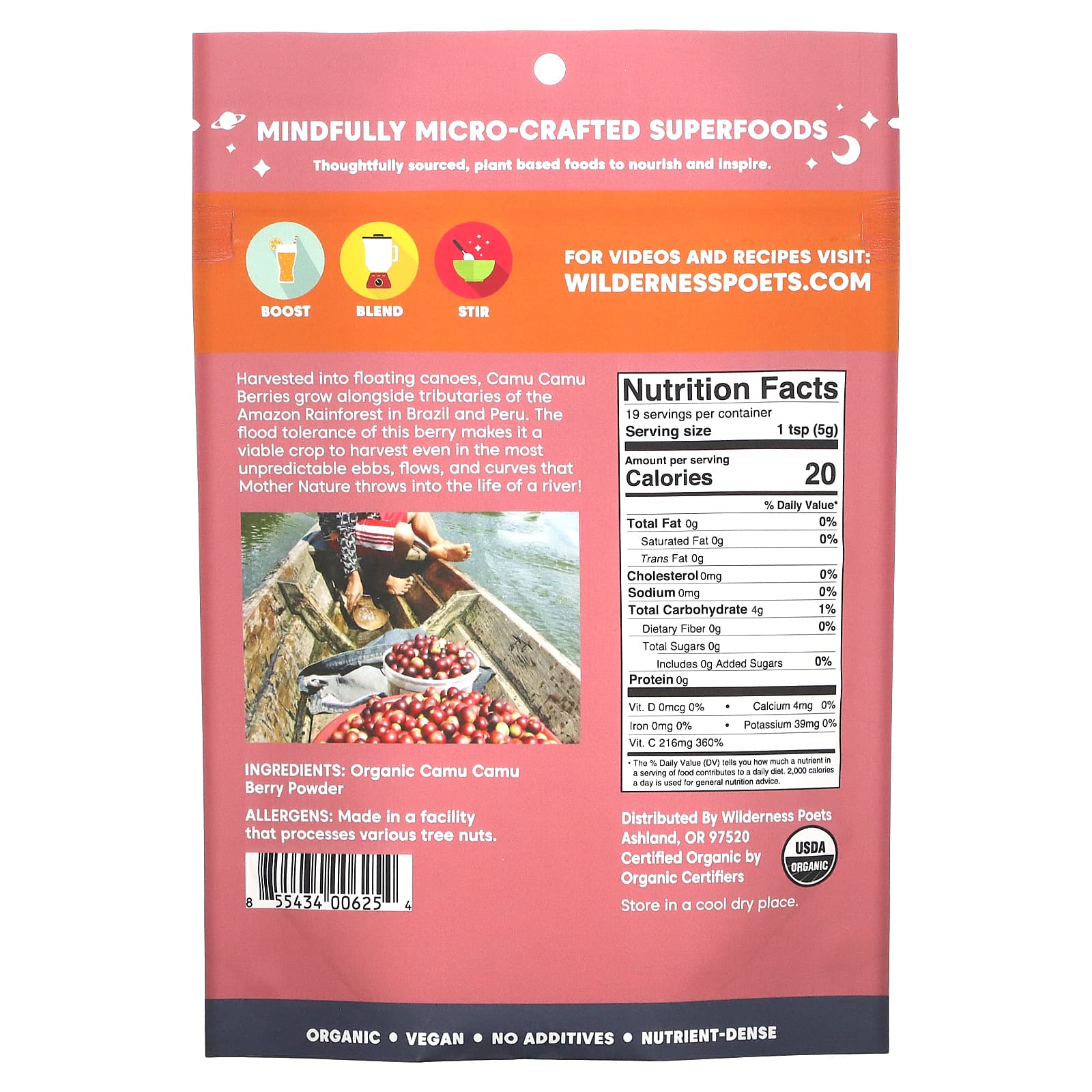*Some information on the Wilderness Poets, Organic Camu Camu Berry Powder, 3.5 oz (99 g)label may be missing, or it may have been written incorrectly. We work hard to keep the information accurate & up to date. Please let us know if you discover any errors.