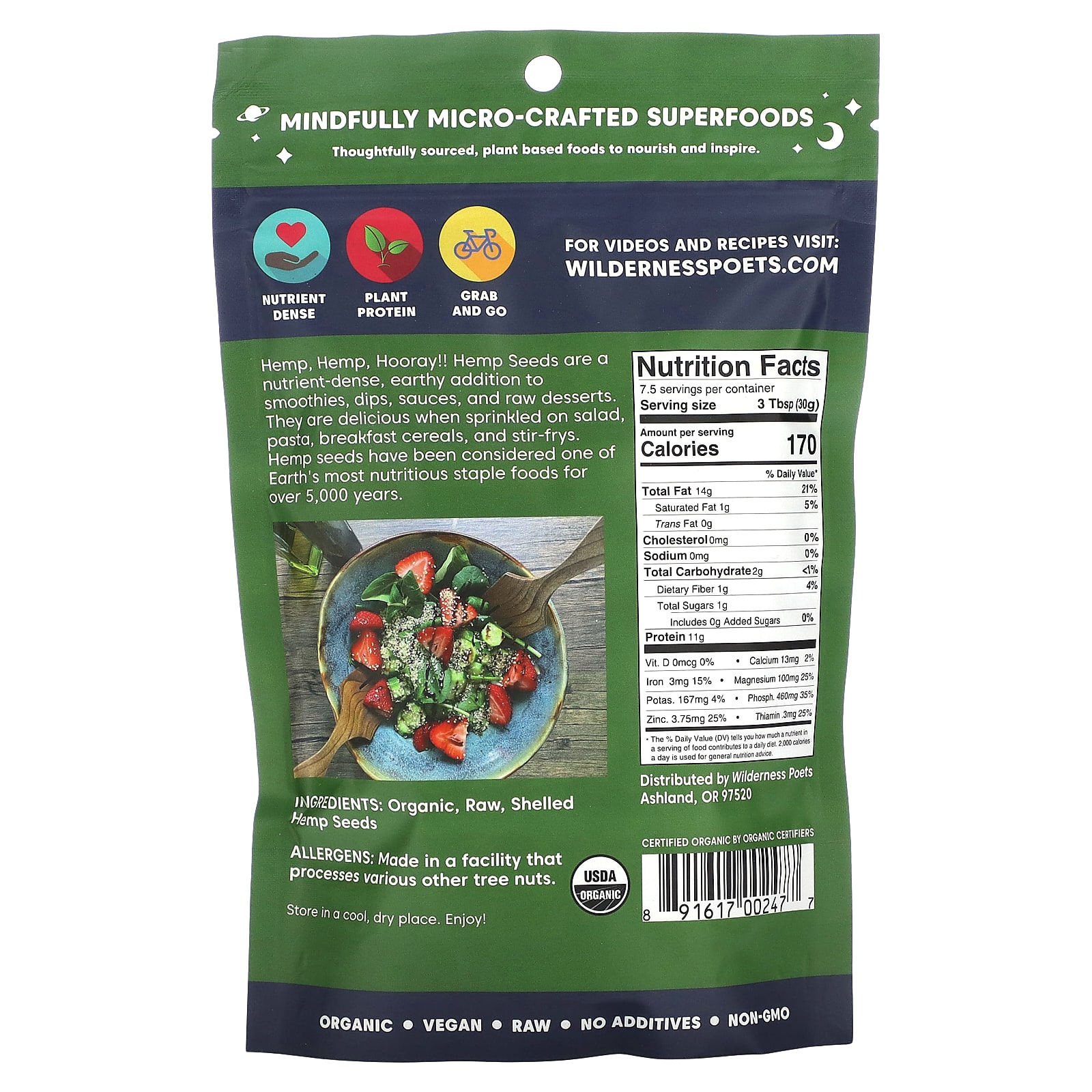 *Some information on the Wilderness Poets, Organic Hemp Seeds, 8 oz (226 g)label may be missing, or it may have been written incorrectly. We work hard to keep the information accurate & up to date. Please let us know if you discover any errors.