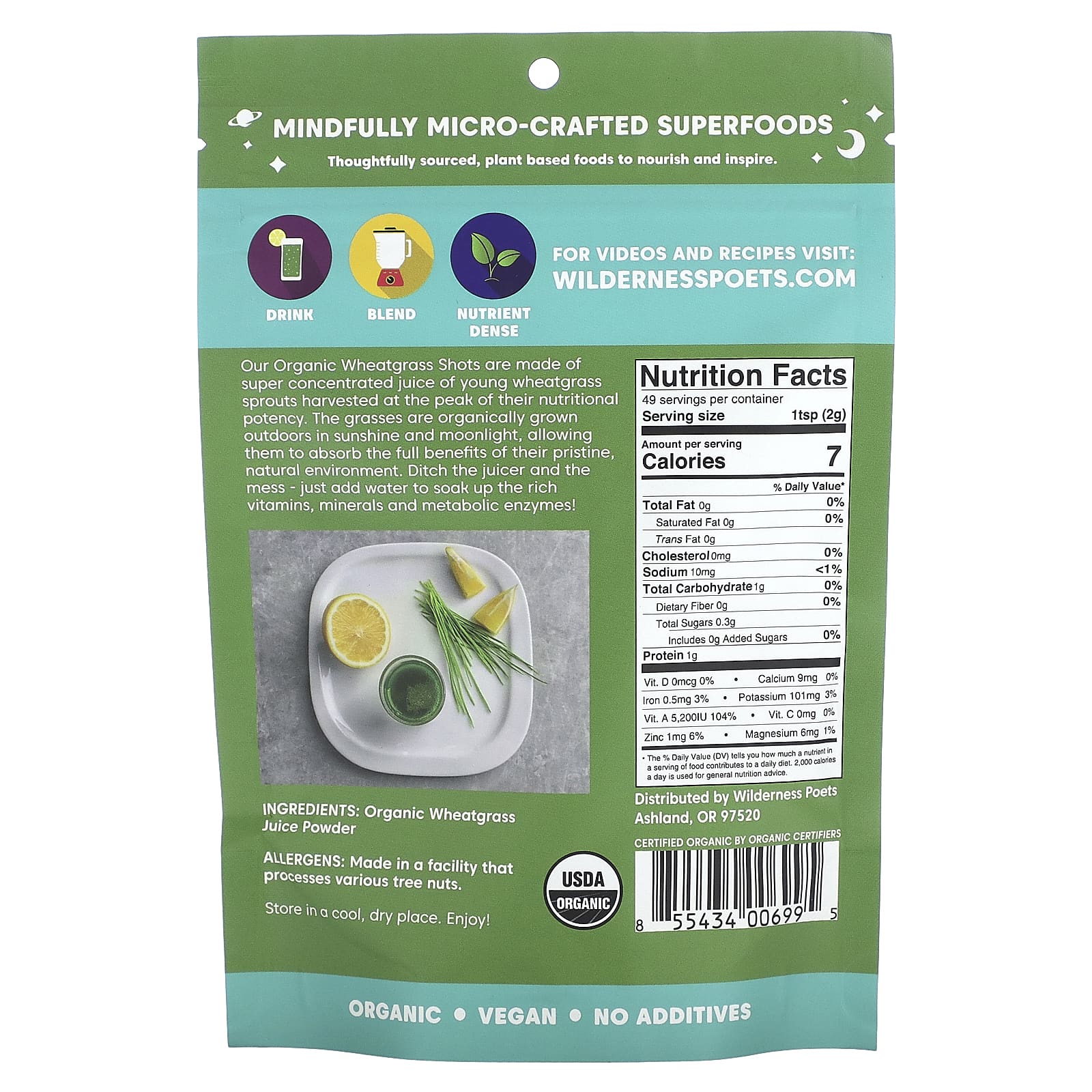 *Some information on the Wilderness Poets, Organic Wheatgrass Shots, 3.5 oz (99 g)label may be missing, or it may have been written incorrectly. We work hard to keep the information accurate & up to date. Please let us know if you discover any errors.