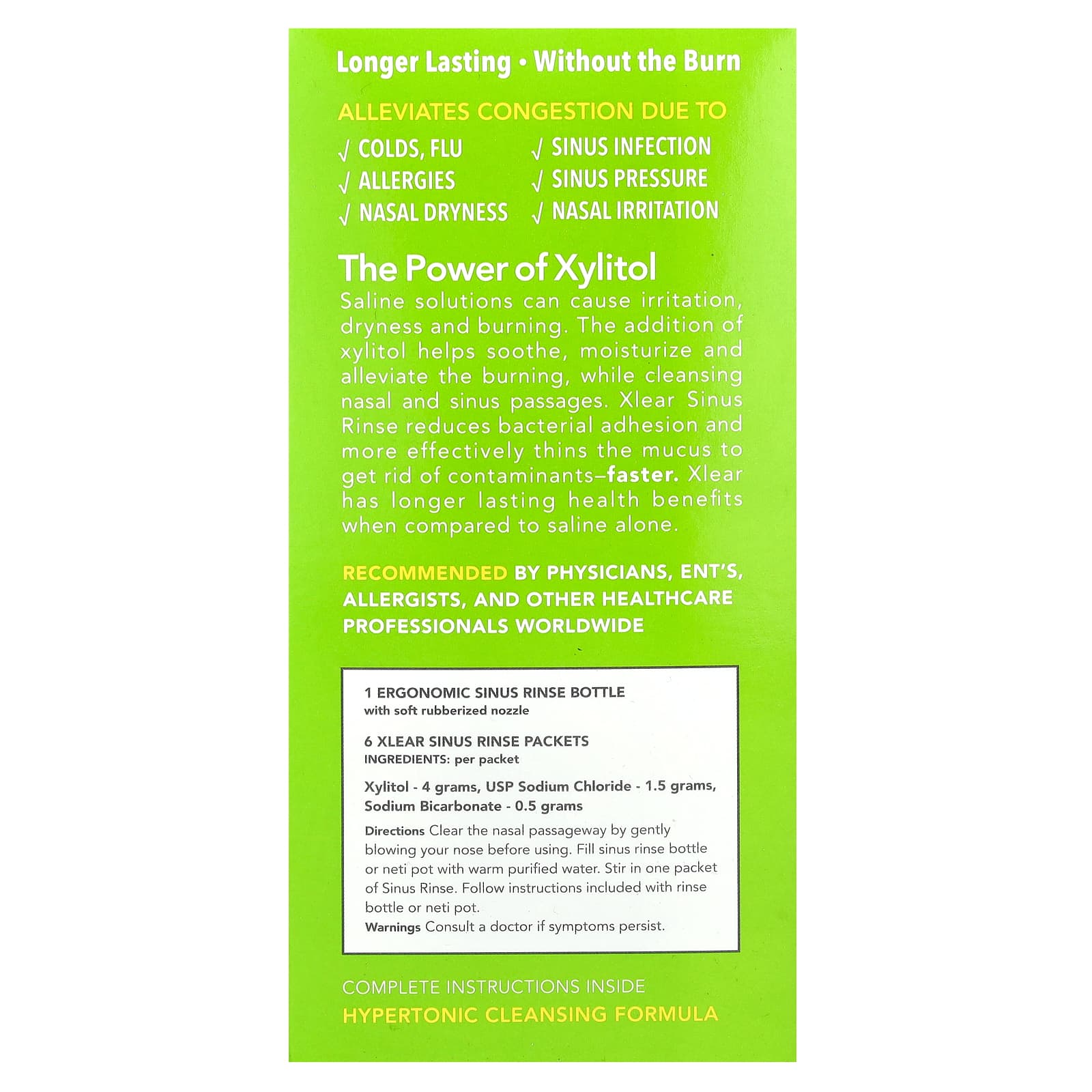*Some information on the Xlear, Natural Sinus Rinse with Xylitol, 1 Kitlabel may be missing, or it may have been written incorrectly. We work hard to keep the information accurate & up to date. Please let us know if you discover any errors.