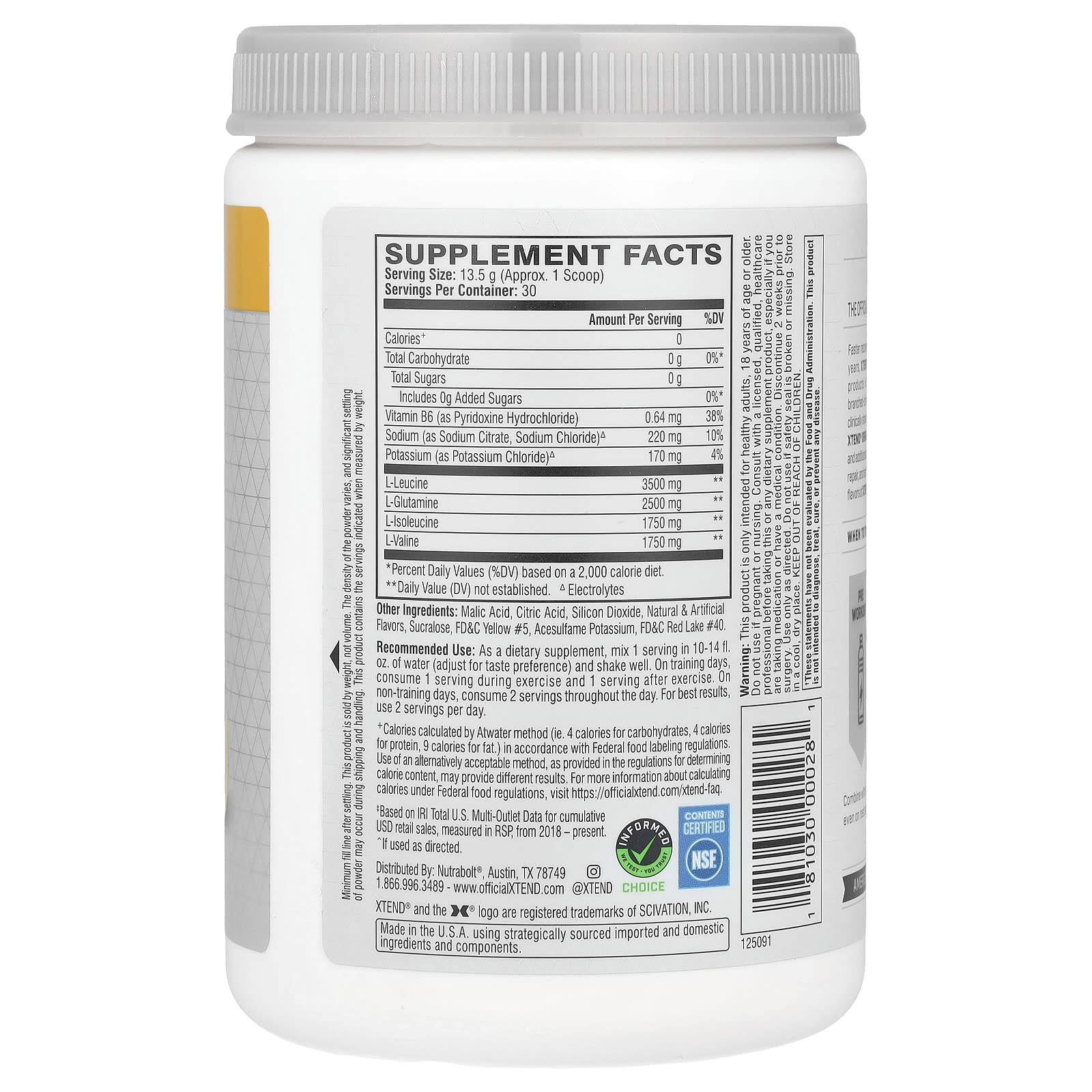 *Some information on the XTEND, The Original 7G BCAA, Mango Madness, 14.3 oz (405 g)label may be missing, or it may have been written incorrectly. We work hard to keep the information accurate & up to date. Please let us know if you discover any errors.