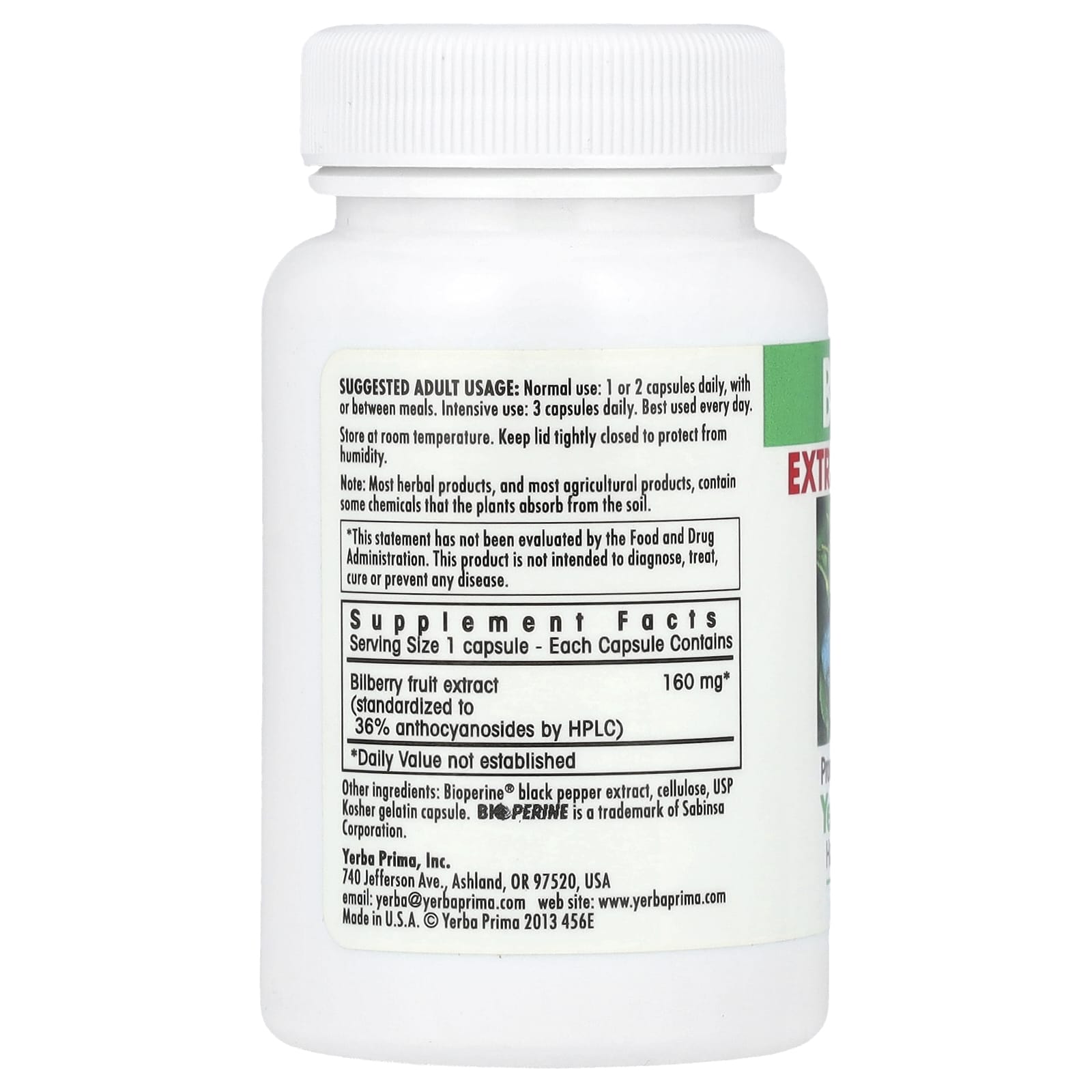 *Some information on the Yerba Prima, Bilberry, Extra Strength, 50 Capsuleslabel may be missing, or it may have been written incorrectly. We work hard to keep the information accurate & up to date. Please let us know if you discover any errors.