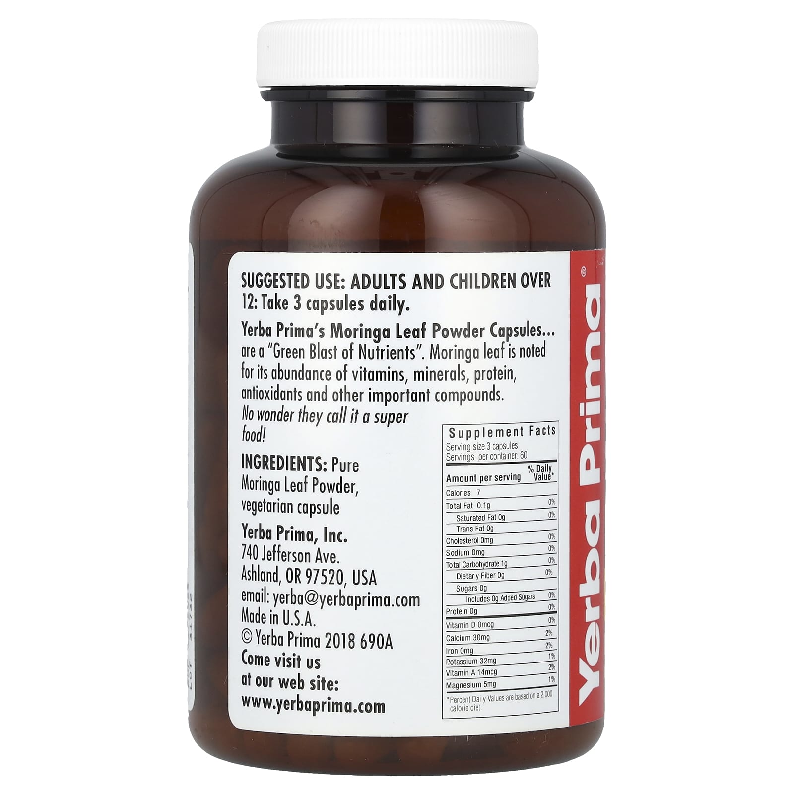 *Some information on the Yerba Prima, Moringa Caps, 400 mg, 180 Veg Capslabel may be missing, or it may have been written incorrectly. We work hard to keep the information accurate & up to date. Please let us know if you discover any errors.