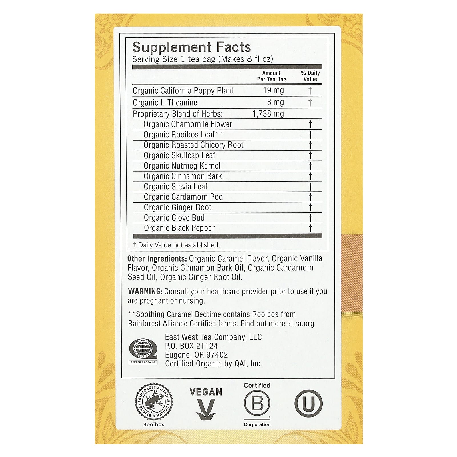 *Some information on the Yogi Tea, Bedtime, Soothing Caramel, Caffeine Free, 16 Tea Bags, 1.07 oz (30 g)label may be missing, or it may have been written incorrectly. We work hard to keep the information accurate & up to date. Please let us know if you discover any errors.