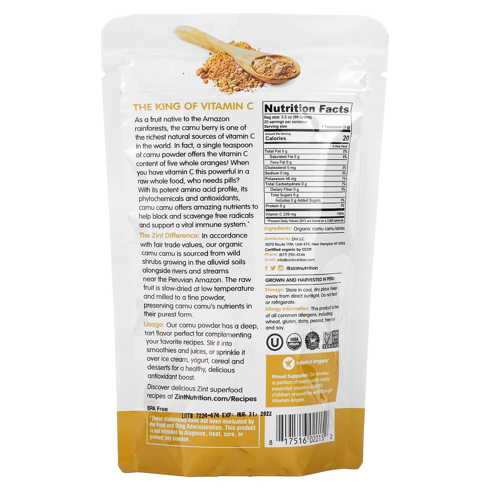 *Some information on the Zint, Organic Camu Camu Powder , 3.5 oz (99 g)label may be missing, or it may have been written incorrectly. We work hard to keep the information accurate & up to date. Please let us know if you discover any errors.